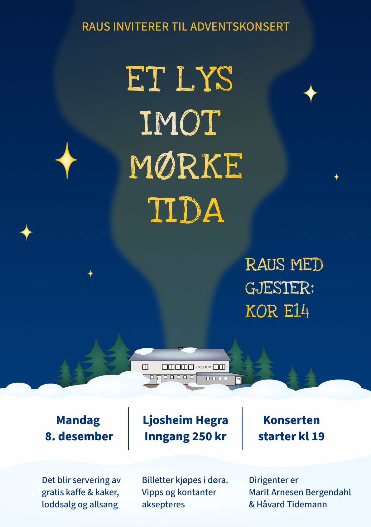 RAUS inviterer til en varm og stemningsfull adventskonsert på Ljosheim sammen med Kor E14.